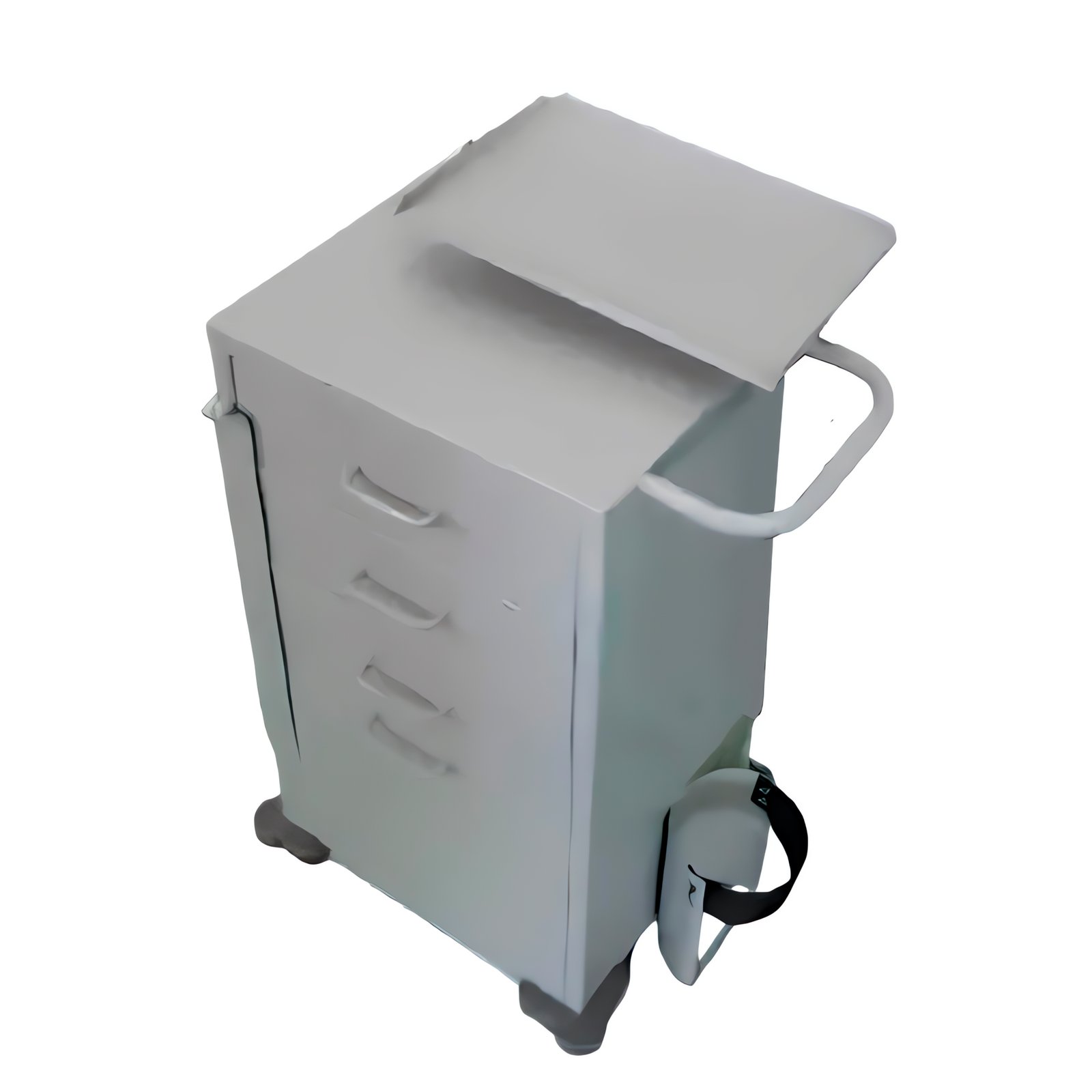 Gavetas com Sistema de Trava: Este carro de emergência possui quatro gavetas, uma delas designada para medicamentos, todas equipadas com sistema de travamento, garantindo o acesso controlado e seguro aos itens armazenados.